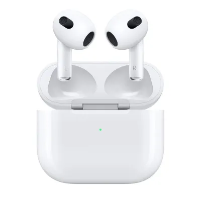 این سری هدفونهای اپل که همواره با طراحی منحصربهفرد و با نام AirPods 3 شناخته میشوند، از نوع توگوشی هستند و میزان بیس و قدرت بالا را به کاربران عرضه میکنند. در آیفون 7 و دیگر محصولات بعد از آن، جک 3.5 میلیمتری صدا که یک ارتباطدهندهی آنالوگ بود، حذف شد. حذف این درگاه با تغییر نوع اتصال و بیسیمشدن ایرپاد همراه بود. طراحی ارگونومیک این محصول باعث شده که هنگام استفادهی بلندمدت از آن هیچگونه احساس خستگی یا درد در ناحیهی گوش خود نکنید. باکس سفید علاوهبر نگهداری از محصول، وظیفهی شارژ آن را هم بر عهده دارد. این هدفون میتواند فقط با یک بار شارژ، تا 6 ساعت شما را در پخش موسیقی همراهی کند. گفتنی است این محصول به چیپست Apple H1 جدید اپل مجهز شده است. لازم به ذکر است که این محصول در مقابل رطوبت و آب مقاوم است و میتوانید با خیال راحت در شرایط جوی متنوع از AirPods 3 استفاده کنید. AirPods 3 به نسبت AirPods Pro قیمت ارزانتری دارد و از داشتن قابلیت Noise Cancellation هم محروم است. اما در بخش طول عمر مفید (زمان آماده بهکار) به ازای هر بار شارژ، توانایی ارائه عملکرد بهتری به نسبت AirPods Pro دارد. این محصول میتواند به ازای هر بار شارژ، طول عمر مفید 6 ساعت را برای پخش موسیقی ارائه کند، این در حالی است که AirPods Pro توانایی ارائه طول عمر مفید 4.5 را برای پخش موسیقی دارد.